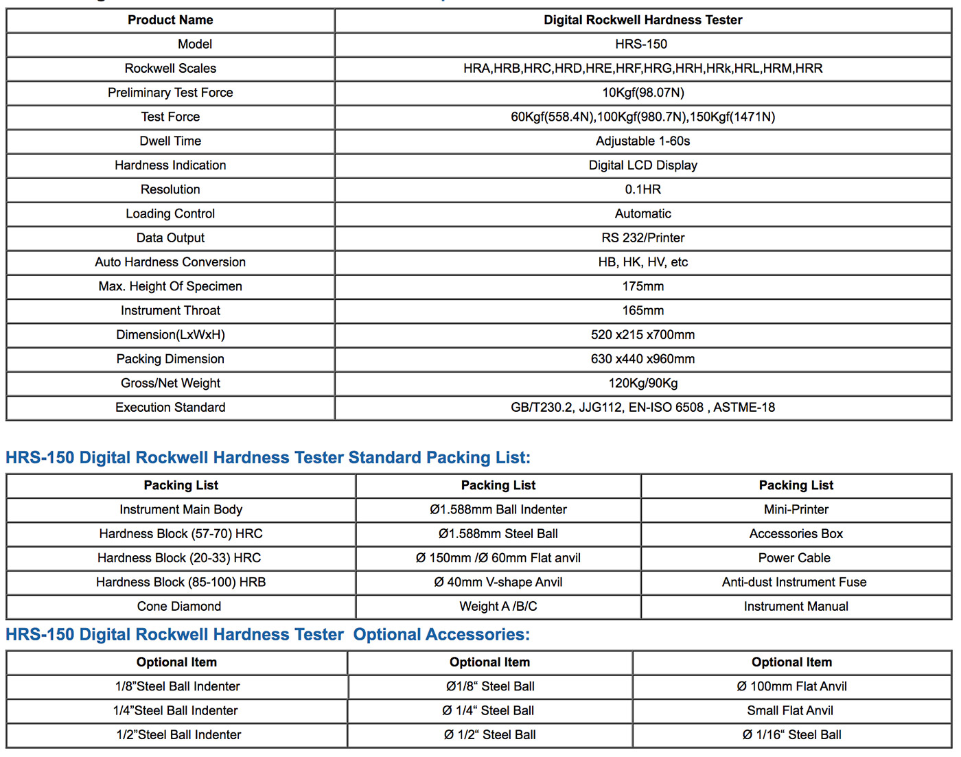 - HRS-150 is a half automatic and intelligent hardness testing machine, except to lift up the anvil to touch the specimen and select the test force: 60Kgf(588.4N), 100Kgf(980.7N) and 150Kgf(1471N) in hand-knob manually, the other operations are entirely automatic.