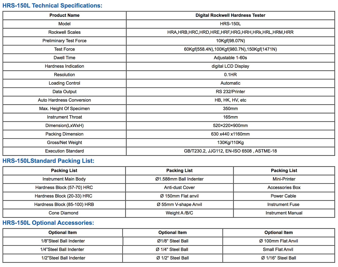 - HRS-150L is a half automatic and intelligent hardness testing machine, except to lift up the anvil to touch the specimen and select the test force: 60Kgf(588.4N), 100Kgf(980.7N) and 150Kgf(1471N) in hand-knob manually, the other operations are entirely automatic.