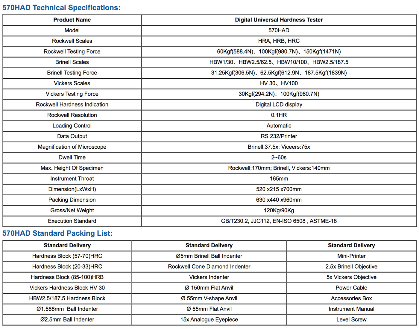 - 570HAD is a universal hardness testing instrument for the measurement of Brinell, Rockwell and Vickers scale.